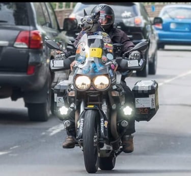 Bundy retired in 2017 after travelling over a million kilometres on the front of a Motorcycle, (Bundy outlasted many motorcycles!). Tex and Bundy helped raise over six million dollars for various charities, with the added bonus of being Tex's best mate, assistance and therapy dog.